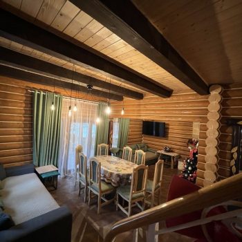 На першому поверсі — кухня-вітальня з каміном, розкладним диваном, обіднім столом та санвузол. На другому — три двомісні кімнати (кожна з двоспальним ліжком) та санвузол (ванна, туалет, умивальник).