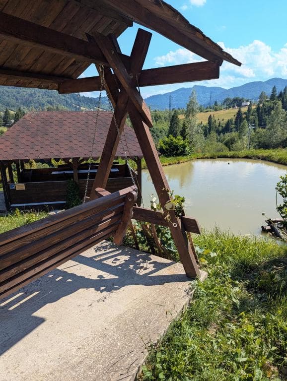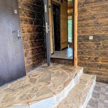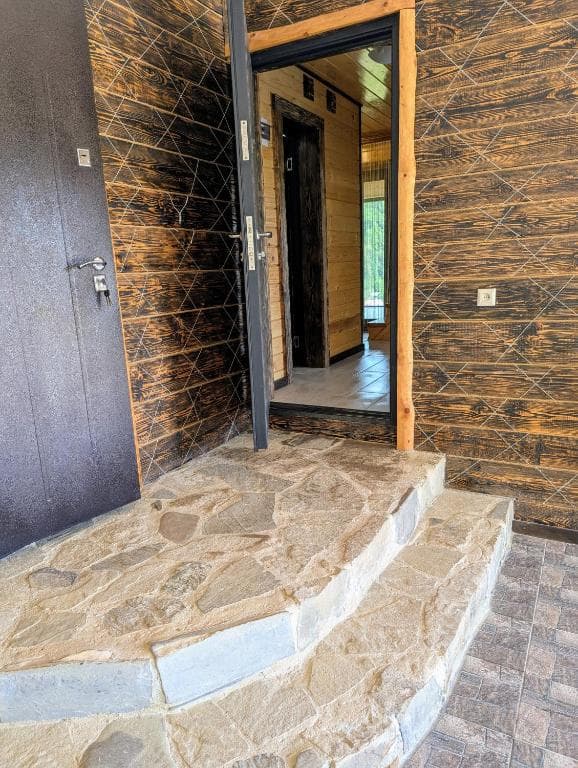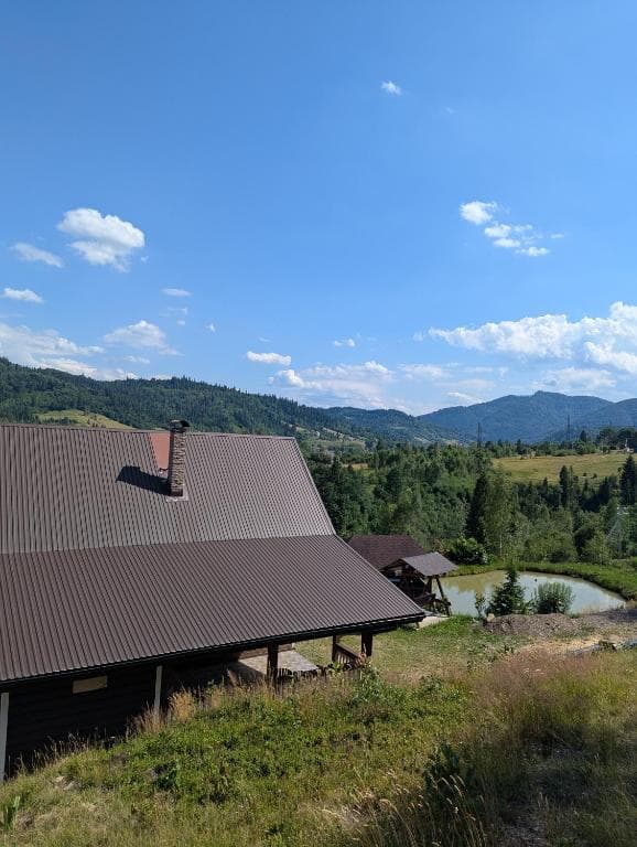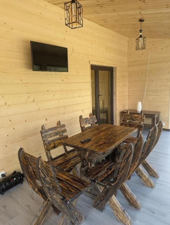Цей чарівний гостьовий будиночок, що розташувався під лісом, пропонує ідеальне поєднання спокою та природної краси. З його вікон відкривається мальовничий краєвид на тихий ставок, що мерехтить під сонячним промінням або віддзеркалює зірки вночі. Ліс, що починається одразу за будинком, пропонує безліч маршрутів для піших прогулянок, дозволяючи зануритися в природу.