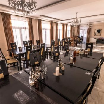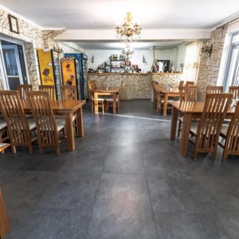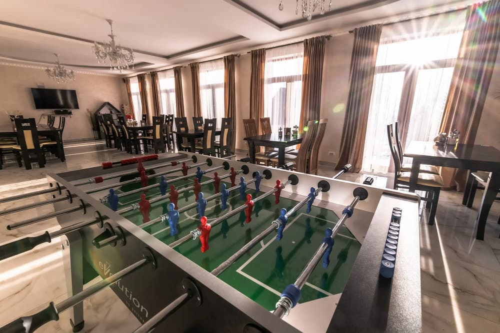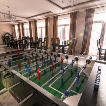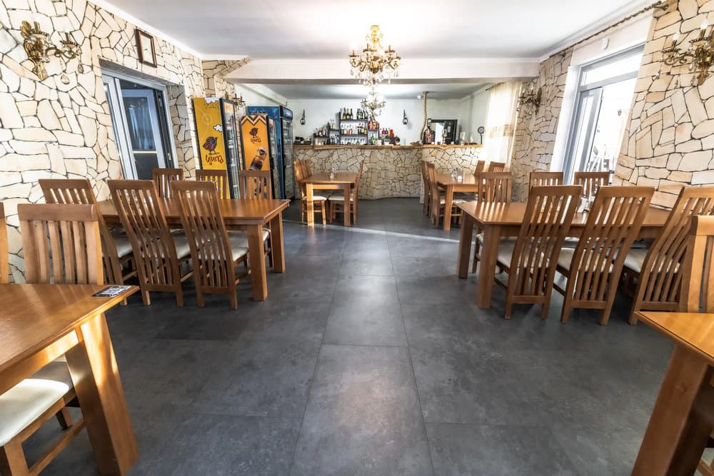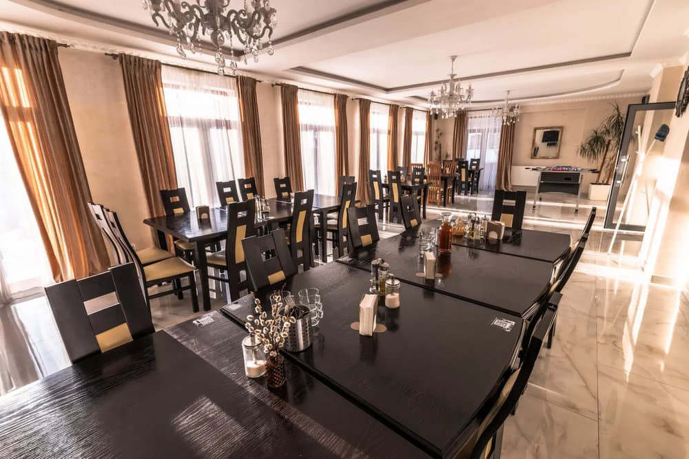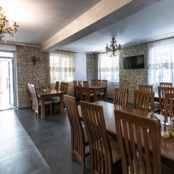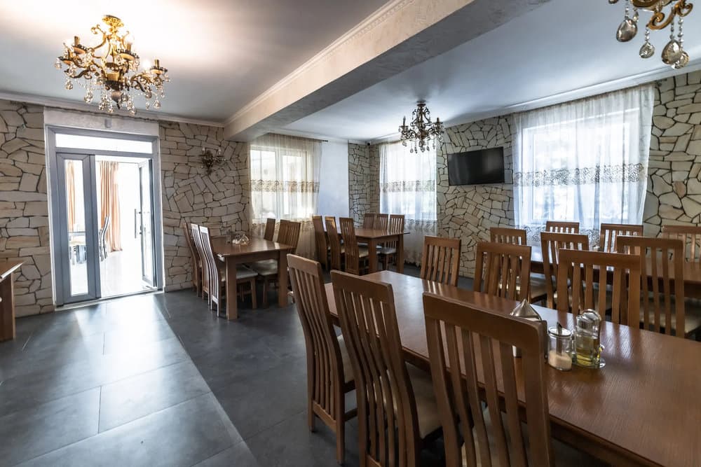 На першому поверсі працюють рецепція та ресторан української й європейської кухні, де гостям подають сніданок і вечерю, включені у вартість проживання; також на території є бар. У готелі діють дві незалежні інтернет-лінії та генератор, що забезпечує безперебійне електропостачання.