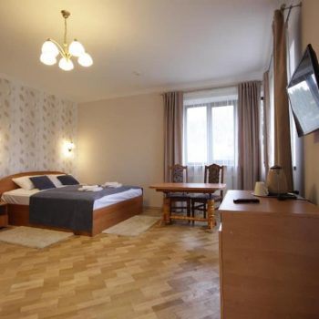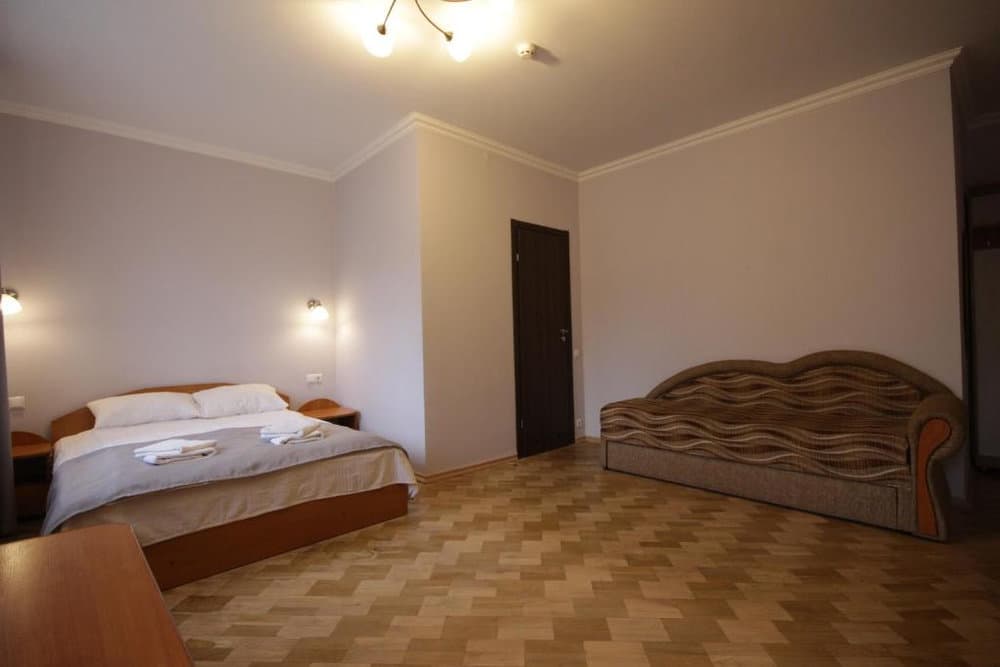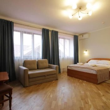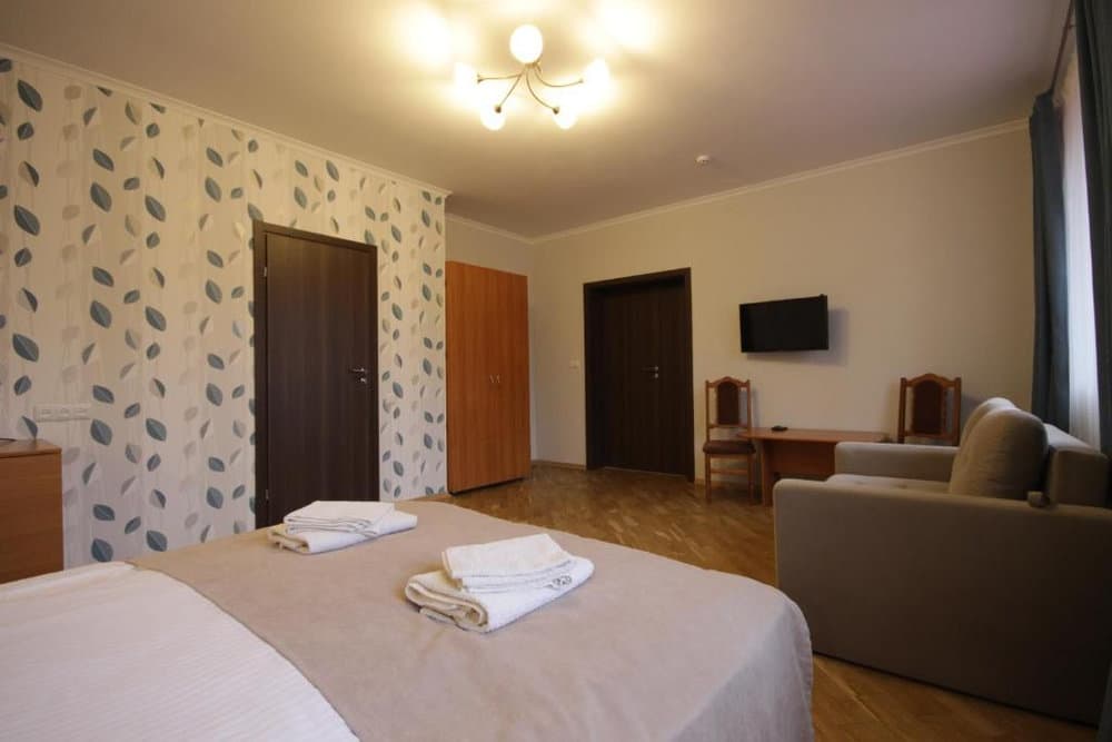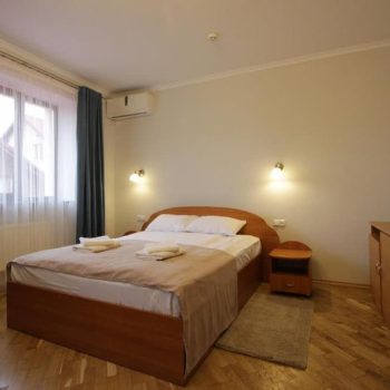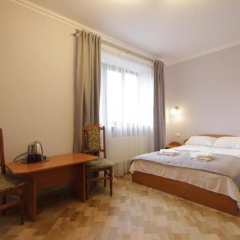 Однокімнатний номер площею близько 28 м² для двох гостей, із можливістю вибору двоспального або двох односпальних ліжок. Додатковий комфорт створює зона відпочинку з диваном, а також наявність телевізора із супутниковим ТБ, холодильника та електрочайника. Санвузол укомплектований душовою кабіною, умивальником і туалетом, для кожного гостя передбачено комплект рушників.