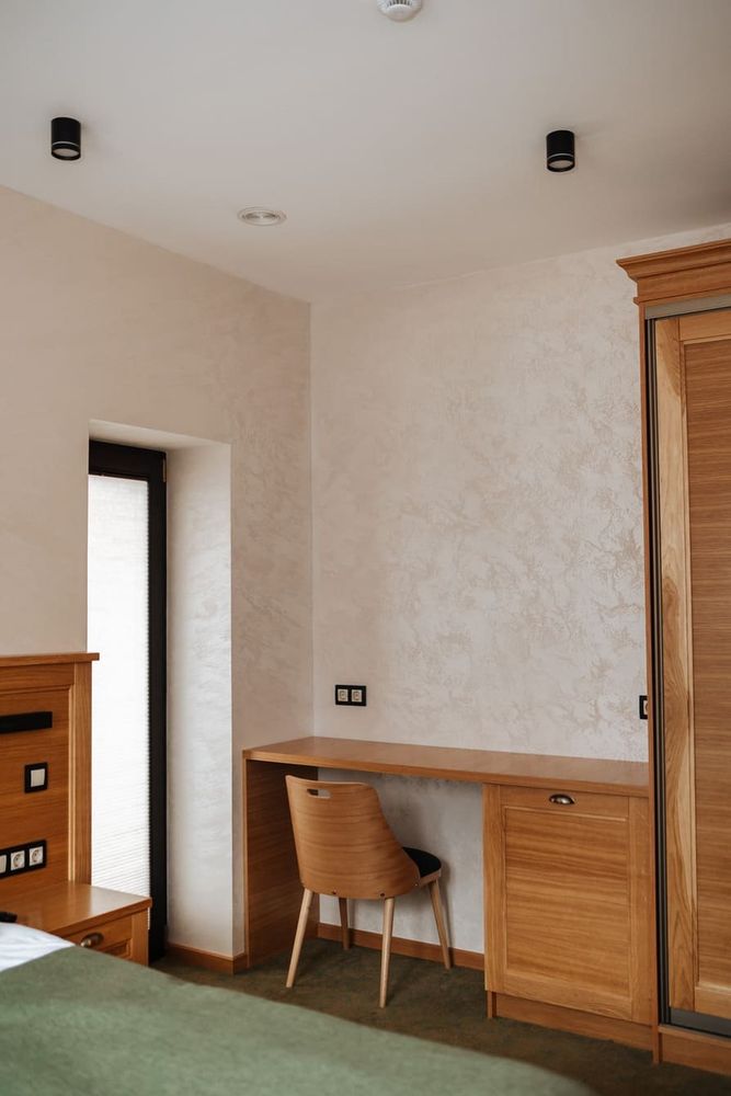 Зручності у номері: Електричний чайник, Сейф, Кондиціонер, Будильник, Холодильник, Робочий стіл, Опалення, Система клімат-контролю, Шафа / Гардероб.