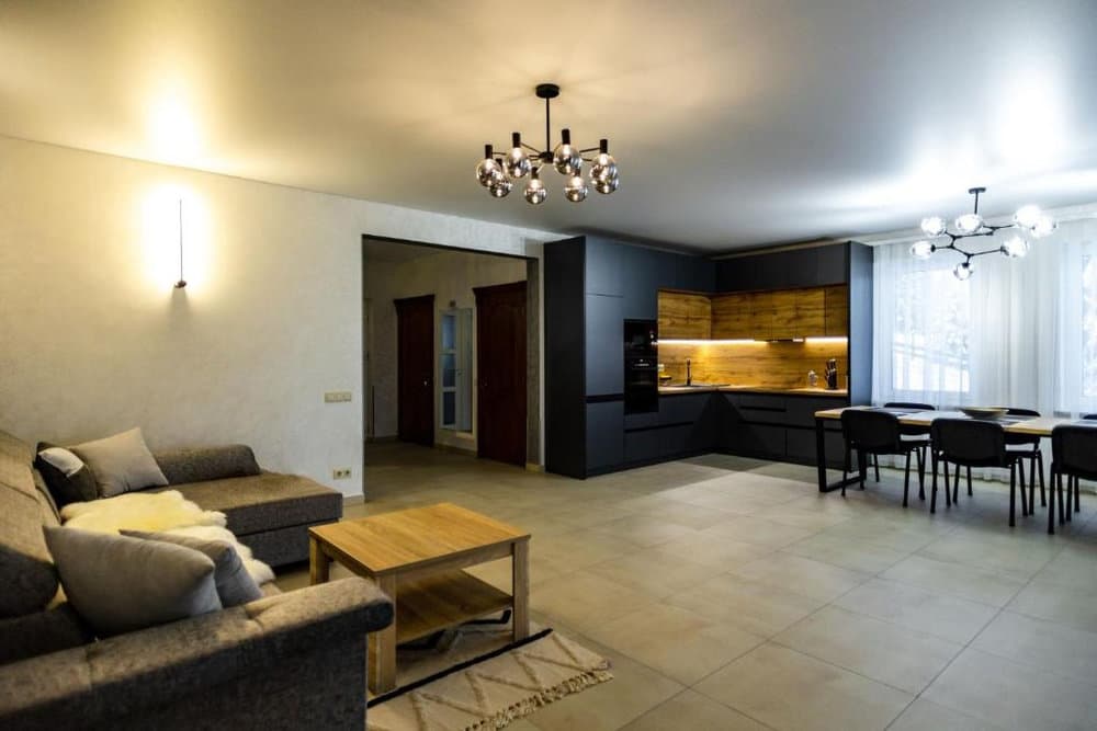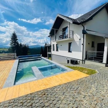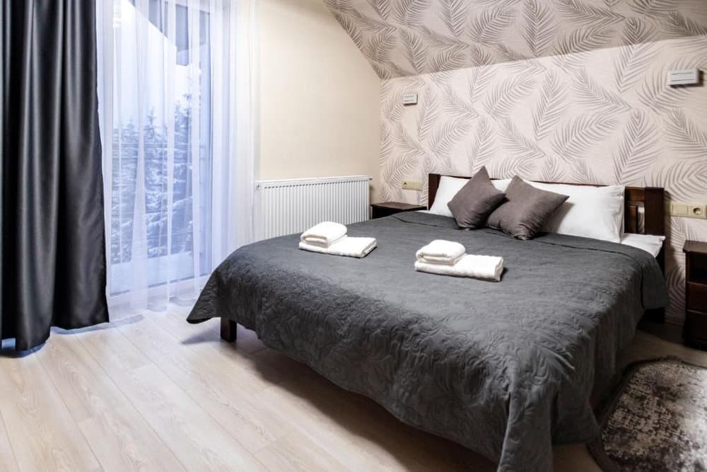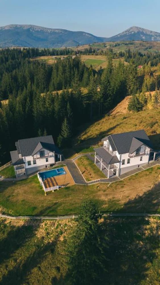 Два сучасні будиночки «Lidia Chalets» розташовані серед мальовничих Карпатських гір, у тихому місці неподалік від популярного курорту Буковель. Це ідеальний простір для відпочинку в будь-яку пору року — тут однаково затишно провести родинні вихідні, зустрітися з друзями та насолодитися відпочинком серед природи. Кожен двоповерховий будиночок розрахований на комфортне розміщення до 8 гостей із можливістю додаткових місць. На першому поверсі розташована простора вітальня з відкритою кухнею, а на другому — три затишні спальні кімнати, з балконів яких відкривається захопливий краєвид на гори.