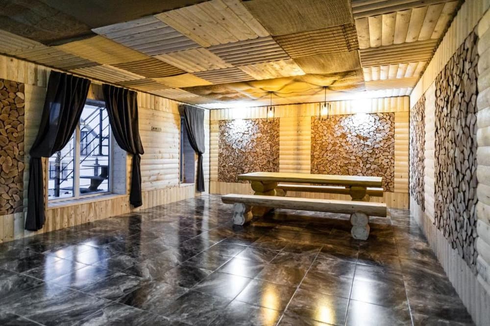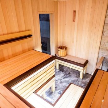 На цокольному поверсі розташована сауна на дровах та кімната відпочинку.